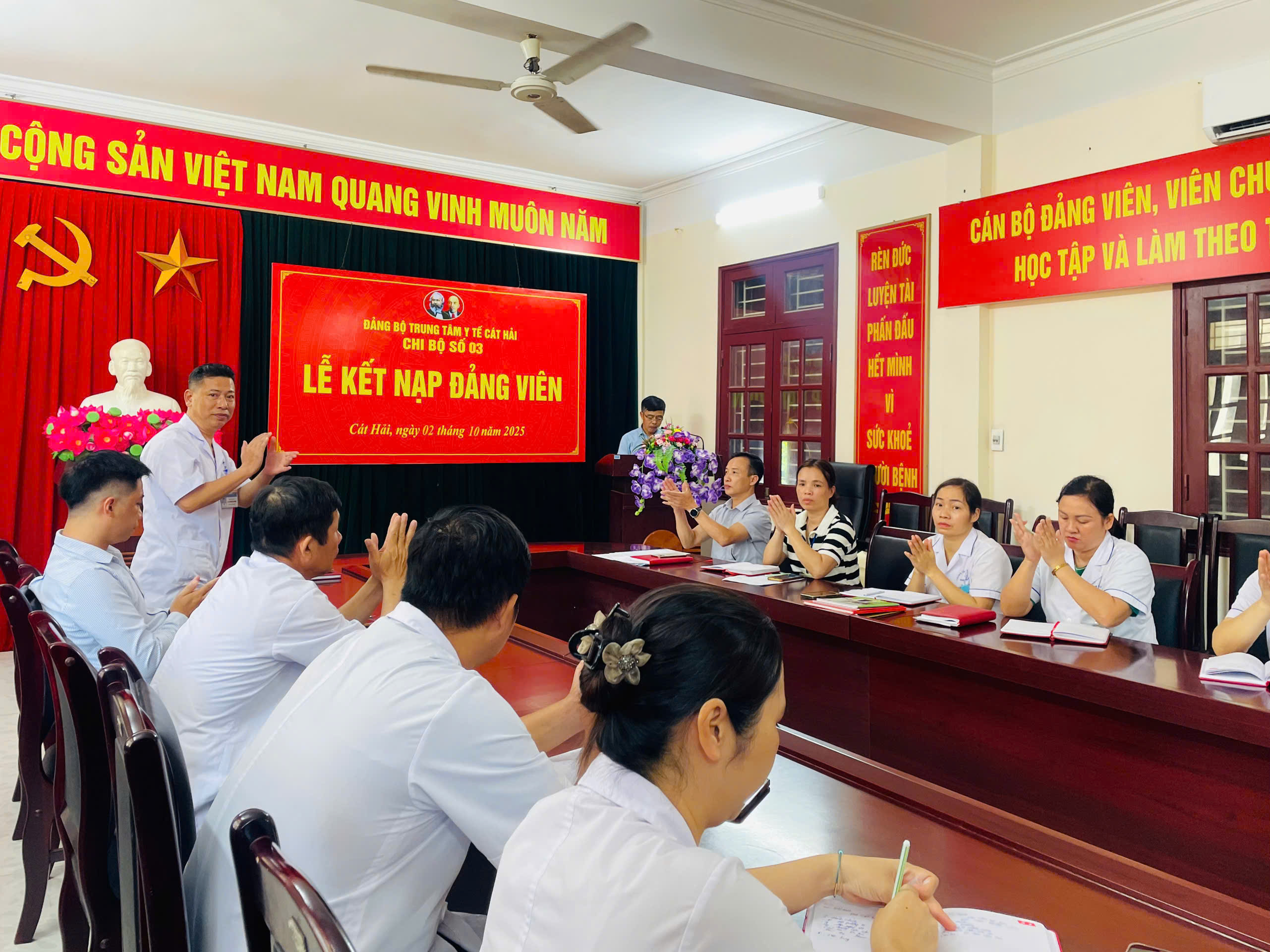 CHI BỘ SỐ 3 - ĐẢNG BỘ TRUNG TÂM Y TẾ CÁT HẢI TỔ CHỨC KẾT NẠP ĐẢNG VIÊN MỚI