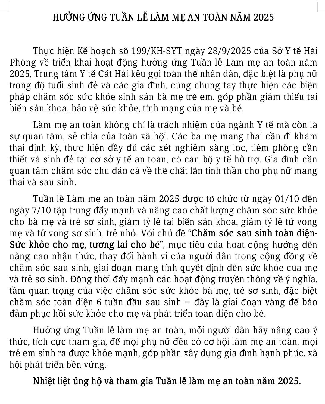 HƯỞNG ỨNG TUẦN LỄ LÀM MẸ AN TOÀN NĂM 2025